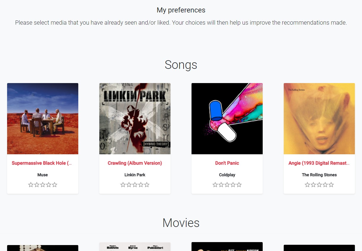 Then, you will have to tell us your preferences regarding each type of media that Recofinement supports. This step allows us to feed our recommendation system.