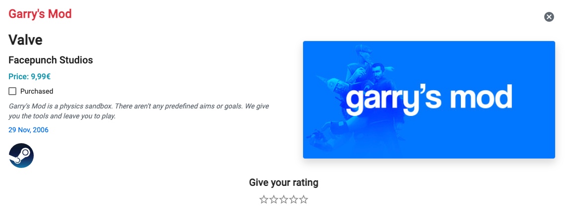You can click on the Steam logo in order to display the game on Steam.